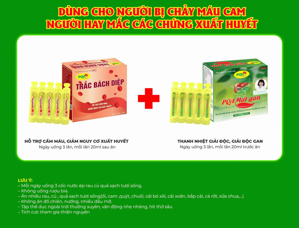Ứng dụng tinh hoa của Bài thuốc , công ty dược phẩm PQA đã nghiên cứu cho ra sản phẩm PQA Trắc bách diệp với công dụng Hỗ trợ cầm máu, giảm nguy cơ xuất huyết. Dùng rất tốt cho những người bị chảy máu cam, người hay mắc các chứng xuất huyết.